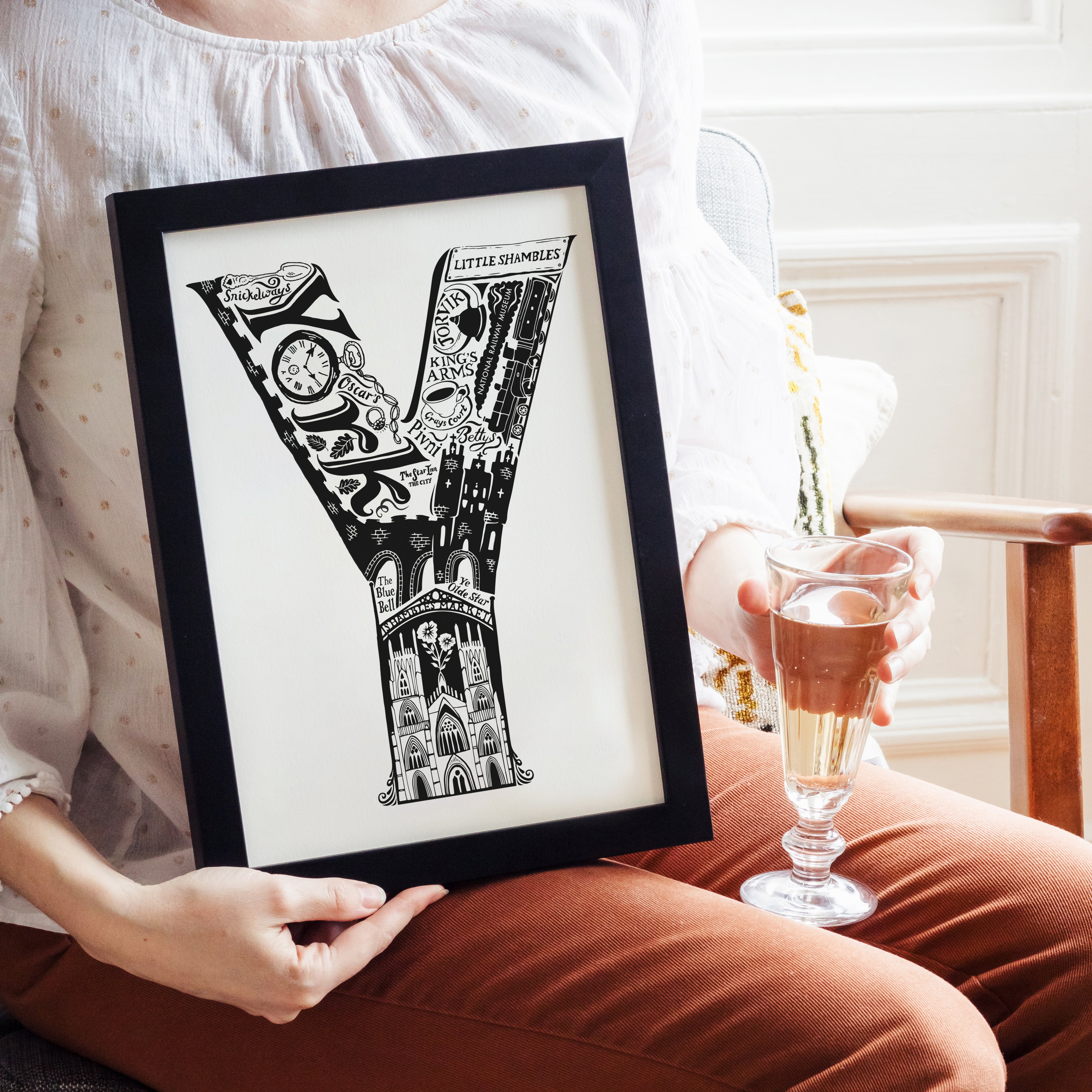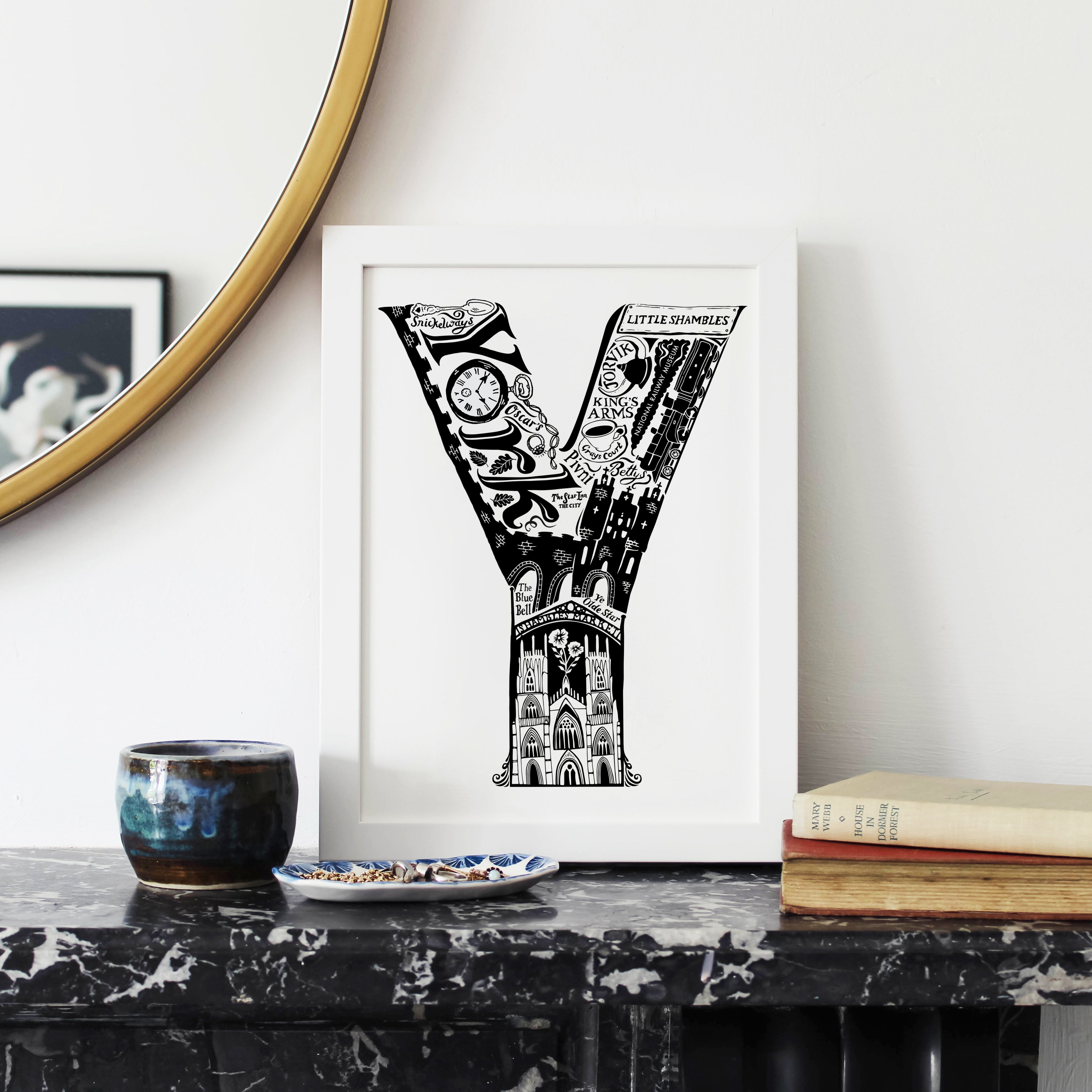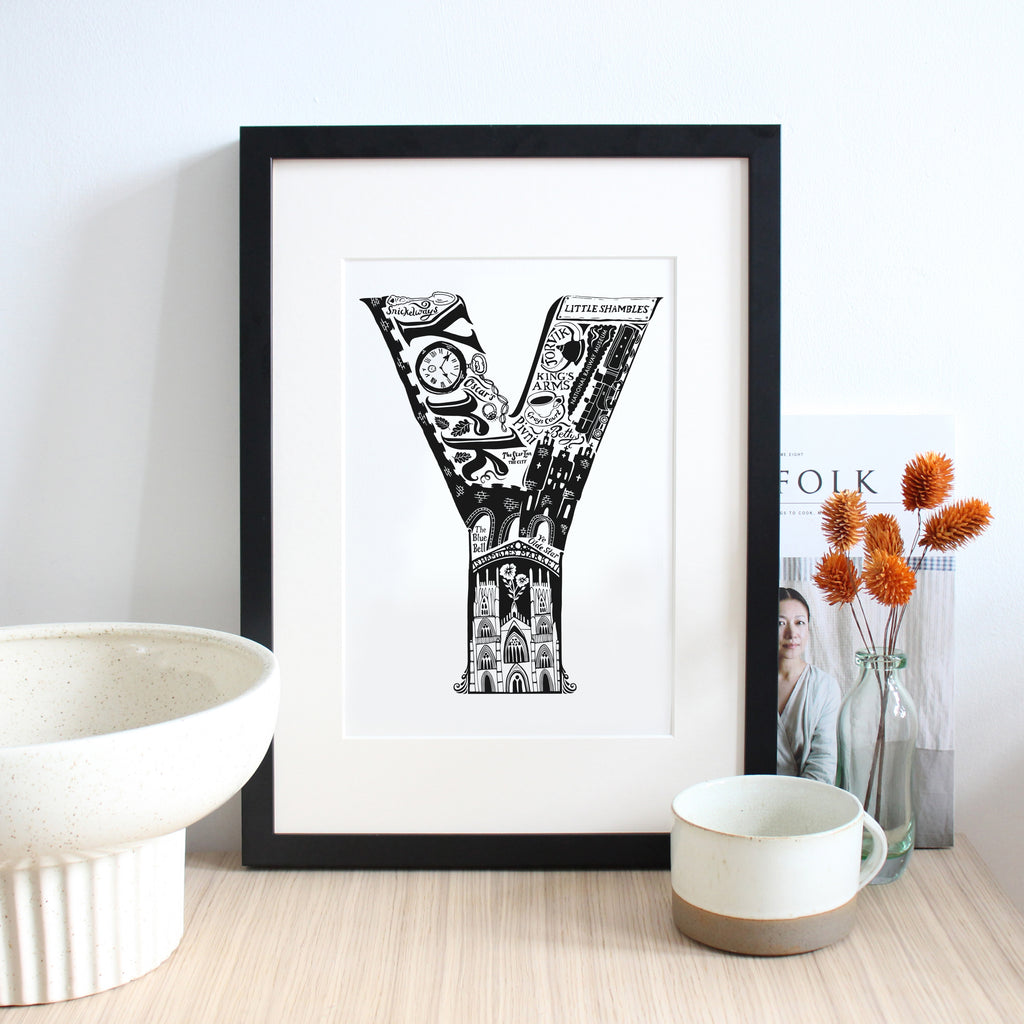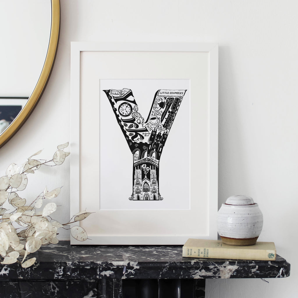 This beautiful black and white York print showcases all the things that make the city great. From the world famous York Minster and The National Railway Museum to local secrets like Snickelways and Pivni. The ideal personalised York gift.