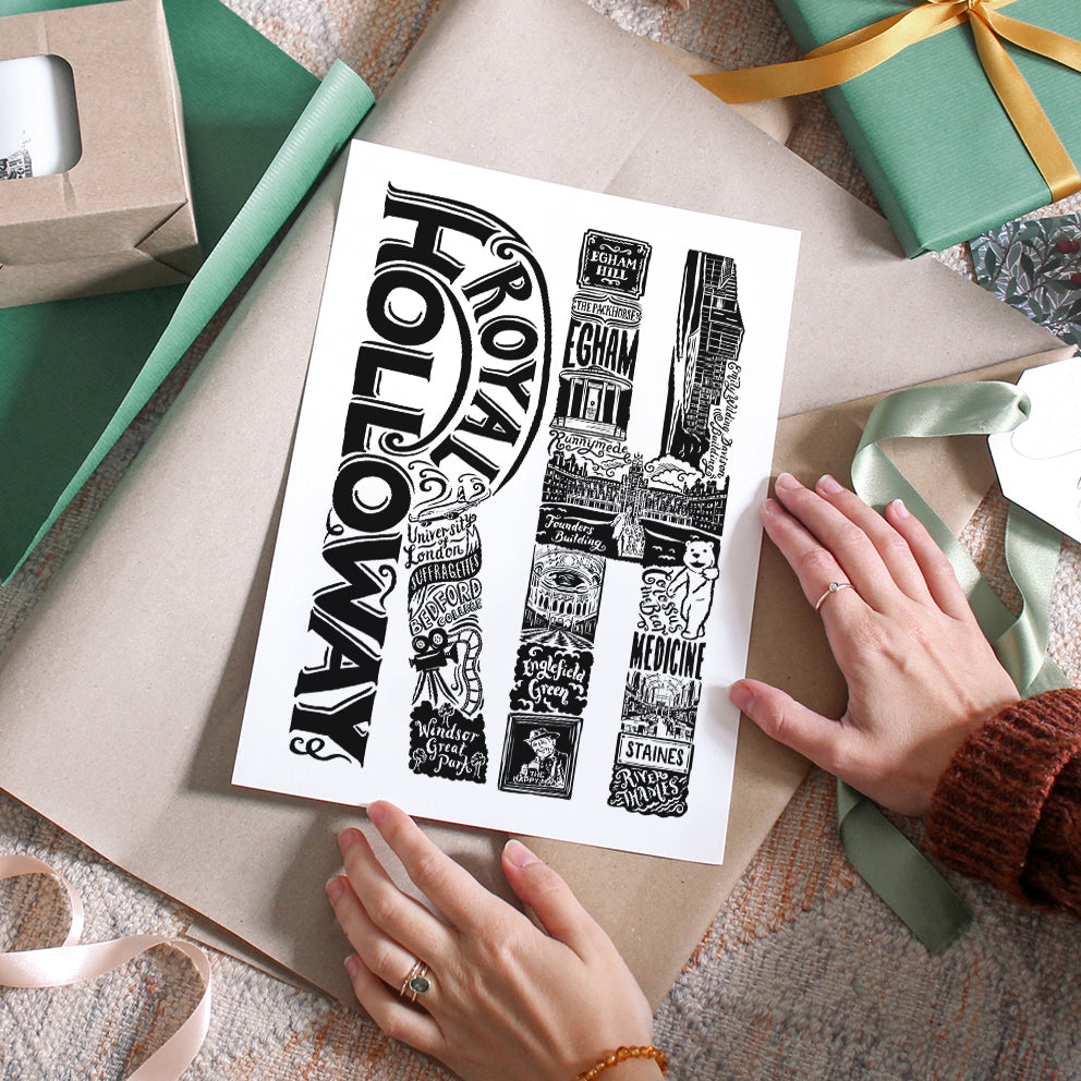This lovingly designed artwork celebrates Royal Holloway University and is the perfect graduation gift, along with being a great present for any current or former students.